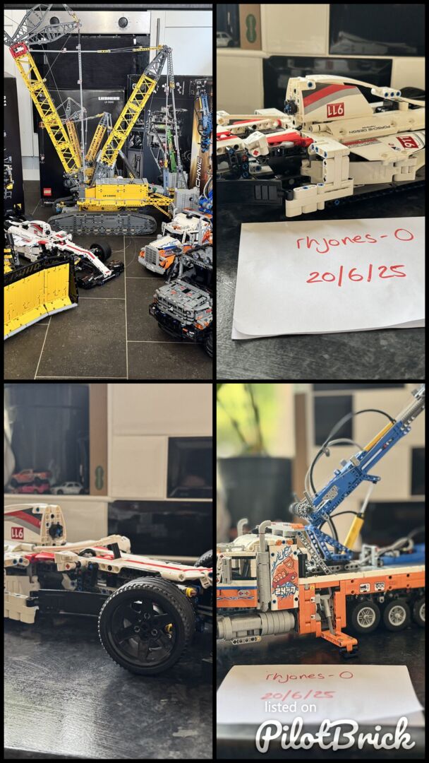 Lego technic collection consisting of 5 models Lego 42096 - Porsche 911 RSR - Currently built as an F1 MOC. Box and instructions, the spare parts are in the box. Lego 42131 - D11 Bulldozer - Box and Instructions Lego 42128 - Heavy Duty Tow Truck - Engine Missing, No instructions, Box Lego 42129 - 4x4 Mercedes Benz Zetros Trial Truck - Box and Instructions Lego 42146 - Liebherr Crawler Crane - Box and Instructions I cannot guarantee that 100% of the bits are there, they’ve been played with by my kids so the odd little thing may be missing, but they look 99% complete. I don’t have the time to take them apart and box them back up, but I can deliver them as they are within a 40/50 mile radius as long as my fuel is covered as it’s a works van that I pay private use for. Please message me before purchasing and give me your postcode so I can work out how far it is. You are also welcome to collect, a weekend or evening would be fine. Any questions just ask.